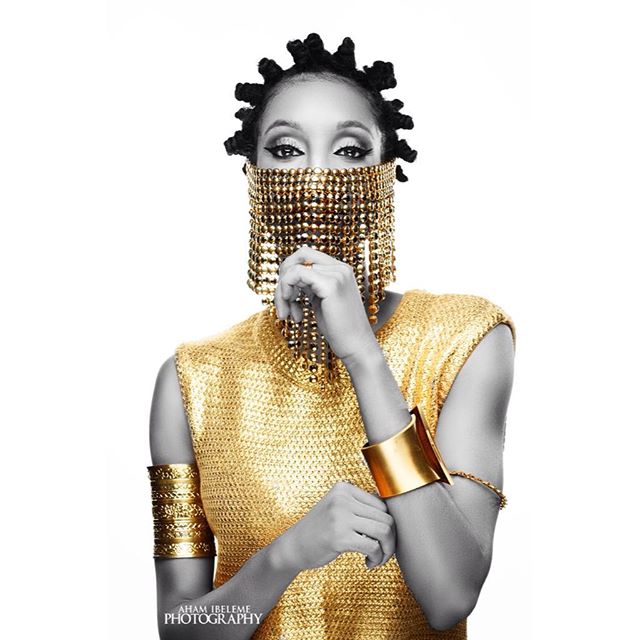 Mavin princess, Di’Ja has some lovely new photos that have been shared on Instagram by photographer Aham Ibeleme and Di’Ja herself. In the photos she is a golden goddess, dressed in a gorgeous gold dress, gold arm cuffs and a gold statement accessory on her face.